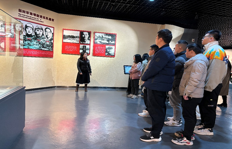 随后组织同志们在新四军第五师历史陈列馆内学习,在这里同志们了解到在武汉沦陷后,李先念为师长的新四军第五师团结人民群众艰苦奋斗下,创建发展了鄂豫边区抗日民主根据地,为赢得中国抗日战争和世界反法西斯战争的胜利作出了重大贡献。大家重温革命先烈在这里战斗、生活、学习的艰辛历程,深切感悟当年革命前辈救亡图存、共赴国难的民族品格,以及军民鱼水情深、携手奋勇抗战的民族气概。