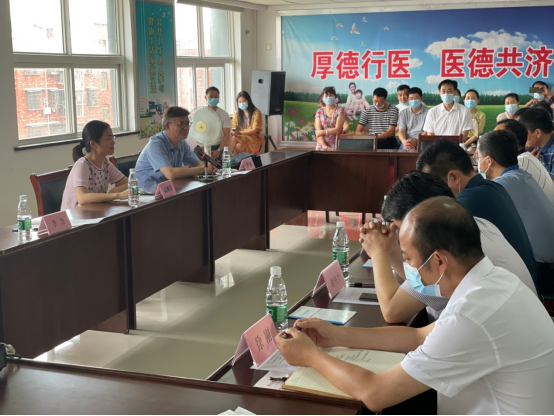 会上,孟柳燕同志介绍了本次调研的目的,详细报告了我院的基本情况、临床重点专科、人才培养、医联体及远程医疗等情况。大沙湖区卫生院院长张金锁也介绍了卫生院基本情况,目前卫生院设置了17个科室、160张床位,医护人员86人,骨伤科为特色科室,目前口腔科缺失,希望我院在专科建设、人才培养和设备投入上给予支持,帮助卫生院完成口腔科建设。