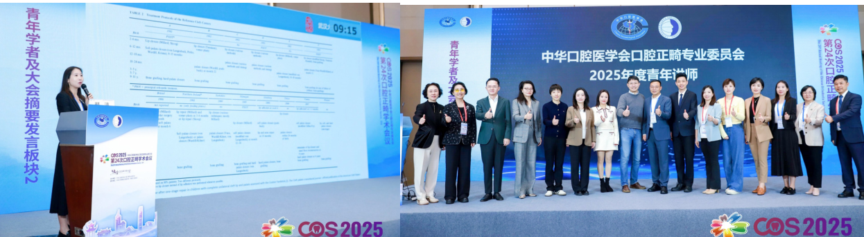 郑洁副主任医师在11月7日下午场次的实操版块进行了《正畸弓丝弯制实操训练》的授课及演示,并于青年学者版块主持并分享《唇腭裂术前矫形:做,还是不做?——基于长期研究的决策解析》,通过团队20余年临床研究数据,系统论证术前矫形的长期疗效,充分展示我院唇腭裂诊疗团队的科研实力,获得同行高度认可。当日,中华口腔医学会口腔正畸专业委员会宣布2025年度青年讲师名单,郑洁副主任医师成功入选,这一荣誉是对其临床能力与学术潜力的高度肯定。