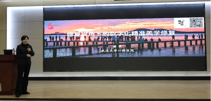授课部分正式开启。首先,修复科黄翠教授以“修复视角下的数字化精准美学修复”为核心主线,系统阐释了基于数字孪生技术实现功能与美学协同重建的全数字化修复流程,并提出“以终为始、数智驱动、多学科序列协同”的诊疗理念,强调全过程围绕患者个性化功能-美学需求展开。